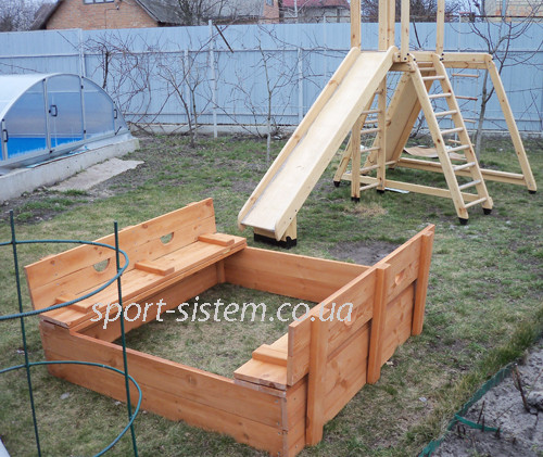 Песочница из дерева и игровой комплекс (Киевская область) | Монтаж сборка деревянной песочницы